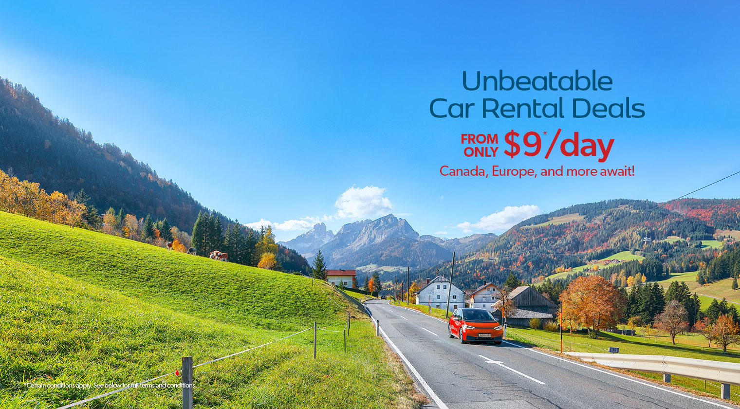 Explore our unbeatable cheap car rentals worldwide with redtag.ca. Whether you're planning a business trip, a family vacation, or a solo adventure, we offer affordable rental options to suit your needs. Check out our car rental deals for special offers and discounts. Traveling within Canada? We have you covered with our car rentals in Canada. For international travelers, explore our options in popular destinations with car rentals in the USA and beyond. With our user-friendly booking system and excellent customer service, renting a car has never been easier. Start your journey with redtag.ca today and enjoy the freedom of exploring at your own pace!