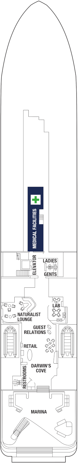 When you're not learning about the islands from our team of Naturalists, the Discovery Lounge is where you'll be socializing, unwinding, and being entertained by performances and conversations with your crew and fellow explorers.
