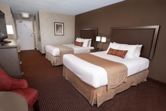 Niagara's most popular resort hotel, located just minutes from the Falls. This charming property features a beautiful indoor courtyard which will make you feel like you are in a tropical paradise. A welcoming indoor pool and two family hot tubs enhance this area. 167 Immaculate guest rooms, various whirlpool and fireplace rooms and suites available. Bourbon Street Bistro is poolside serving selected menu items and beverages. Enjoy the all new Doc Magilligans Restaurant & Irish Pub on site for breakfast, lunch or dinner. Featuring live entertainment four nights a week. McDonald's is on property and many other dining options close by. WEGO Falls shuttle available stops right out front of hotel. Discounted parking for only $10.00/night. Find us on Facebook to stay in the loop!