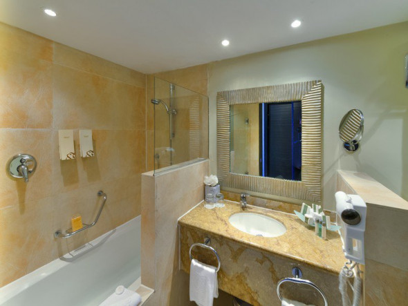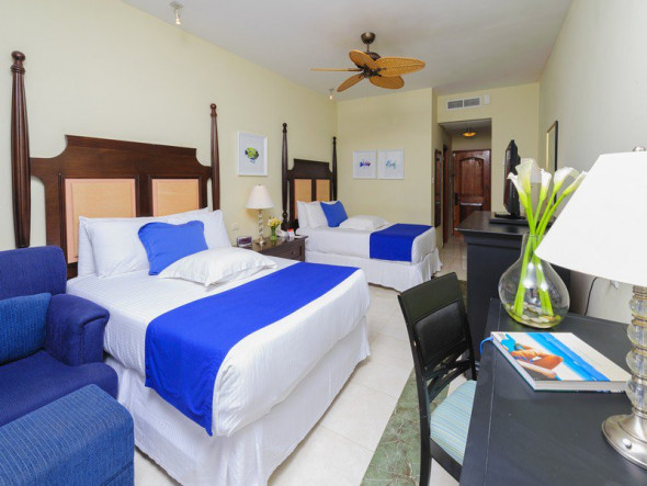 For entertainment, all-inclusive amenities include: a fitness center, non-motorized water sports, volleyball, basketball, tennis, aqua aerobics, snorkelling, ping pong, billiards, board games, and daily entertainment programs. There is also a casino and live entertainment onsite. All rooms feature tile and marble floors, private balconies and terraces, ceiling fans, satellite TVs, wireless Internet access, Mini-Fridges, iron and ironing boards, hairdryers, safes, and telephones.