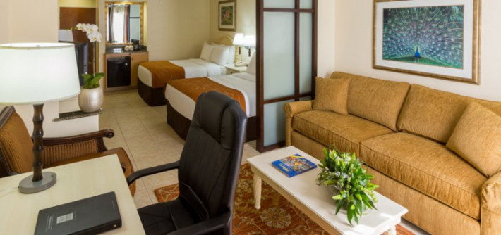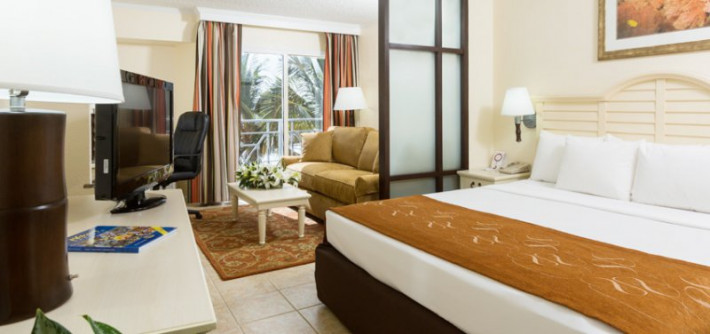 The Comfort Suites Paradise Island, Bahamas (also known as Comfort Suites Bahamas), is the perfect place to explore the wonders of the Bahamas and Paradise Island. The one room junior suites are both roomy and comfortable. Enjoy the tropical gardens and pool with swim up bar or dine in the indoor-outdoor garden restaurant and bar... You can also enjoy additional facilities at the nearby Atlantis hotel (at an extra charge) including; tennis (lit for night), golf course, full spa and a supervised kids club. Comfort Suites Offers: King or two double beds, Complimentary Continental Breakfast , Pool with swim up bar, Sitting area with sofa bed, Cable TV, Voice mail telephones, In hotel guest laundry room, In room mini bar, In room safe, Hair dryer, Iron / Ironing Board, Bahamas tropical setting and free poolside scuba lessons.