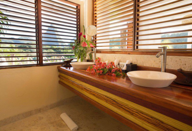 The furniture has been individually designed and handmade in the region with the exclusive use of the island woods such as teak, mahogany, green heart, red cedar and wild breadfruit. All rooms have fridges, electric tea/coffee makers and wall mounted hair dryers, and in-room safes. Deluxe and Premium rooms also have irons and ironing boards.