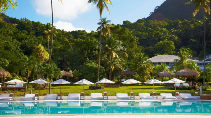 Sugar Beach, A Viceroy Resort is set amidst more than 100 acres of tropical rainforest on the island's scenic Caribbean coast. Embraced by St Lucia's majestic World Heritage-listed Pitons, the resort's 96 Luxury Sugar Mill Rooms, Cottages, Villas and Luxury Beachfront Bungalows boast elegant styling, private plunge pool, four poster bed, luxurious Egyptian cotton linens, every possible modern amenity, and personalised butler service. Two stunning white sand beaches, beautiful Rainforest Spa with tree house treatment rooms, full PADI dive facility, and superb waterfront dining ensure the ultimate vacation experience with space enough for honeymooners and families alike.
