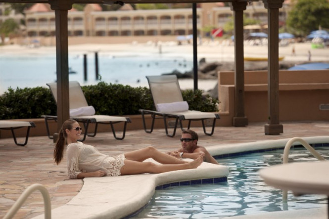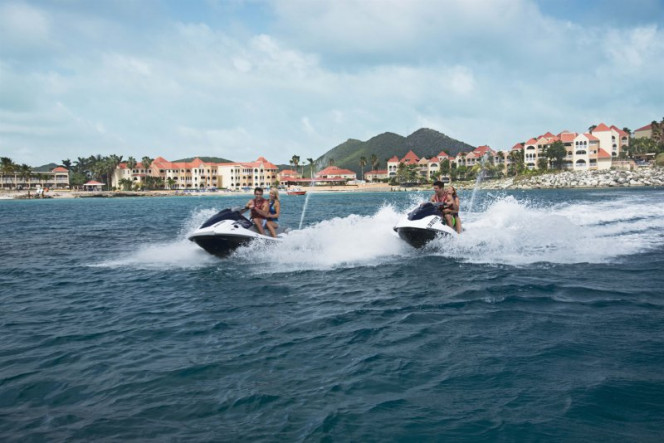 Water sports are available beachside, with equipment rentals from snorkelling gear to wave runners. Easy currents make swimming perfect for all ages, while divers delight in the marine life surrounding the peninsula’s edge. Off the beach, guests enjoy three freshwater swimming pools, tennis courts (lit for night play) and a fitness room. A full service activities’ center is open daily to help guests explore the international delights of St. Maarten.