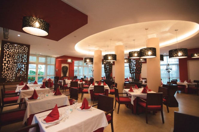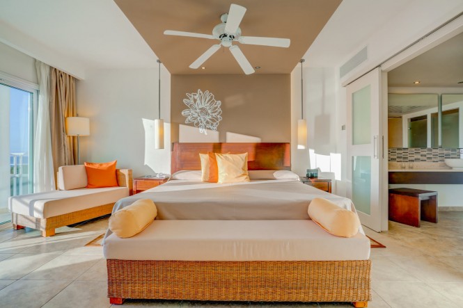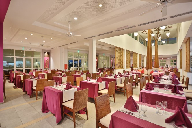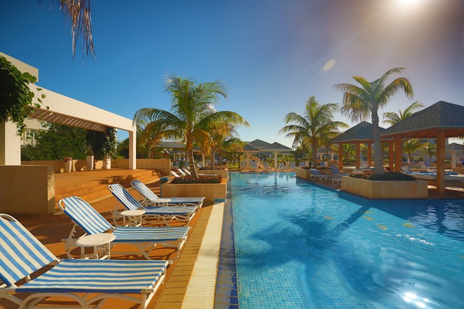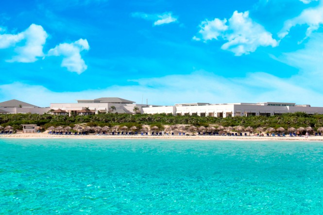 Valentin Perla Blanca is an adults only all inclusive resort (+18), with over 1300 meters of a powdery white sand natural beach located on Perla Blanca beach on Cayo Santa Maria, Cuba. This luxurious resort is 90 minutes away from Santa Clara International Airport. Valentin Perla Blanca is the perfect place to relax and enjoy living in an exceptional natural setting close to "Biosfera Buenavista" and "Wildlife Refuge Cayo Santa Maria". The resort designed in an elegant contemporary Caribbean style, is divided in two distinct sections, each with its own swimming pool; it proposes a total of 1020 rooms including 6 Imperial suites, with ocean, pool or garden views, distributed in 19 three story buildings. The pool area has unique and attractive designs with built-in lounge chairs and swim-up bars. A great place to enjoy swimming with your favorite drink. The resort offers WiFi ($) service at lobby and room areas. The main buffet restaurant "Frangipani" is opened for breakfast, lunch & dinner. A choice of any of the five " A la carte" restaurants is also offered for dinner at either the Spanish, French, Cuban, Italian or Seafood restaurants; reservations required. All Inclusive 24hs snack service provided at the "Snack & Grill Bar". During both day and night time, you will be able to enjoy one of the 7 bars such as the Lobby Bar, Tea & Coffee The Corner, Sport Bar & Disco Lounge "Que Bola", " Aqua Bar Azul" Bar and Beach Bar "Cienfuegos". In the evening, enjoy nightly shows at the "Locura Theatre" and dance the night away with a live band.