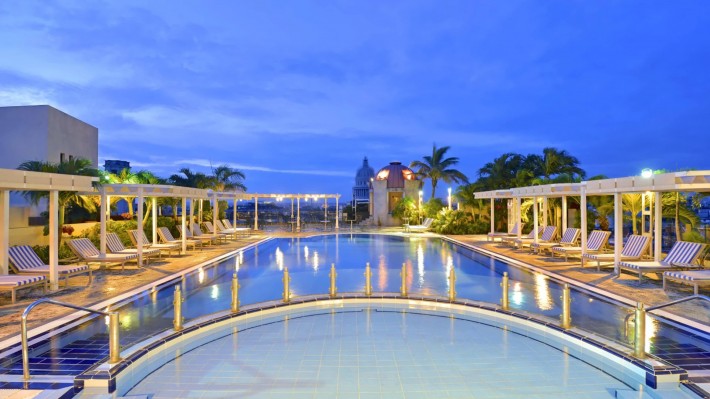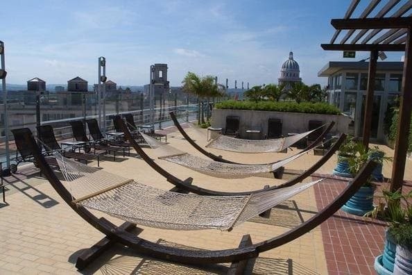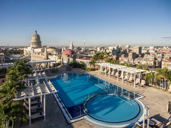 The terrace and tropical bar with a swimming pool located on the top floor of the hotel, as well as the meeting rooms have splendid views of Havana. bar, fitness Centre , medical Centre, private Garage/Parking, restaurant, room service, safe security box and a large swimming Pool In front of the Central Park, this luxury hotel is in the center of the old part of Havana, the Garcia Lorca Theatre and the Capitol. It combines the elegance of the Spanish colonial style with modern services and installations. The terrace and tropical bar with a swimming pool located on the top floor of the hotel, as well as the meeting rooms have splendid views of Havana.
