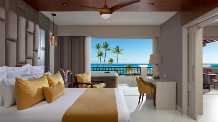 Located in Playa Bávaro, this adults-only property sits on 700 yards of picturesque palm-studded, white sandy beach. It includes 373 spacious rooms designed in a subtle contemporary style with Caribbean touches, all featuring a furnished terrace with an outdoor Jacuzzi. The resort features three gourmet, reservation-free restaurants and bars. Plus, guests of Secrets Royal Beach can also enjoy dining privileges at Now Larimar Punta Cana, expanding their dining options to include nine restaurants and 10 bars. They can also enjoy Dine Around privileges at Zoëtry Agua Punta Cana, Secrets Sanctuary Cap Cana and any of the Dreams Resorts & Spas in the Dominican Republic.