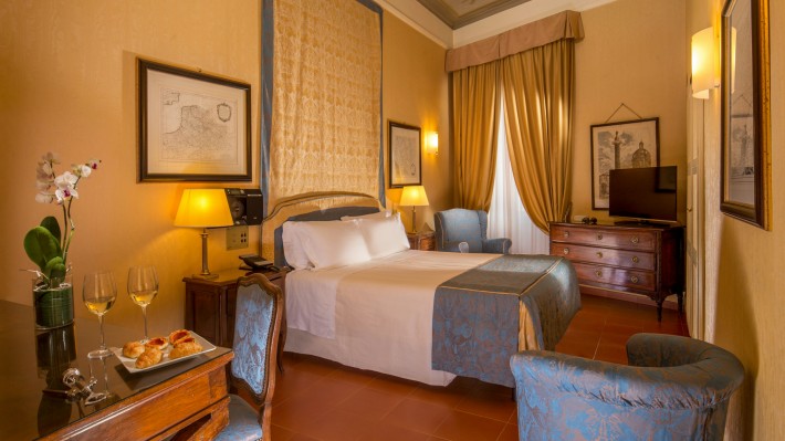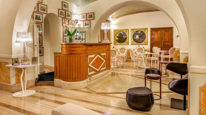 In an elegant historic building in the centre of Rome, the Hotel Canada represents the outcome of Hoteliers' generations experience. It shows the ancient tradition of hospitality that renews itself every day. A recent refurbishment has rediscovered the original architecture of the building. It was constructed in 1870 in order to provide accommodation for officers from the nearby barracks of Castro Pretorio. The Hotel Canada is easily reachable from "Termini Station" (500 m), the most important station of the Eternal City and the main rail yard of Italy. This Station is well connected with both airports of Rome: Roma Leonardo da Vinci/ Fiumicino and Roma Ciampino. The Hotel Canada is located in an ideal spot to visit the very historic centre of Rome. It is close to the subway (Line B, Castro Pretorio's stop) that allows every guest to reach the downtown in just a few minutes.