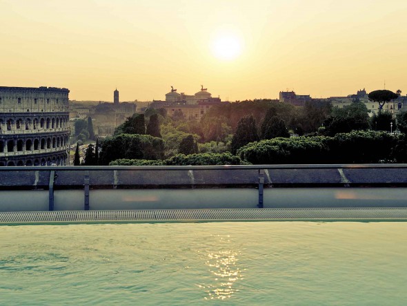 A 4 star hotel in the heart of Rome, 200 m from the Colosseum and from the metro station, not far from the Eur business district and from the major archaeological sites, monuments and museums. Ideal for both business trips and holiday visits, the hotel offers 160 rooms, some boasting views of the Colosseum, all with satellite and pay TV, safe and airconditioning. Undercover pay parking, 3 meeting rooms, 2 bars. Outdoor swimming pool and panoramic terrace (open from the end of May till September).