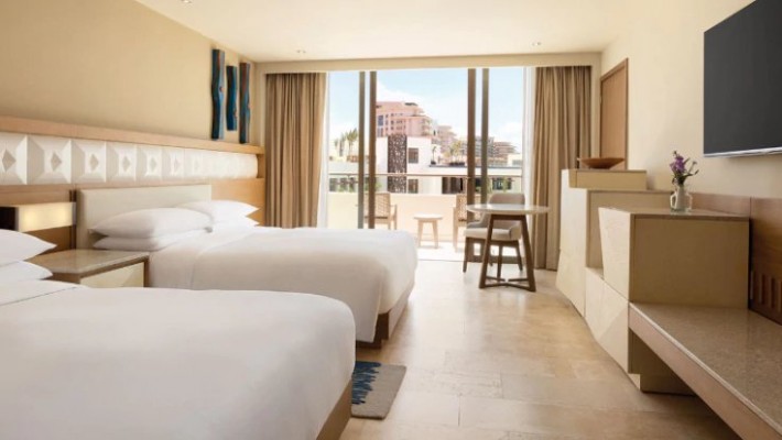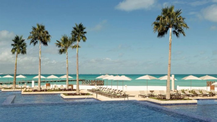 Hyatt Ziva Cancun, exclusively situated at the shore point known as Punta Cancun, is the only resort surrounded on three sides by the brilliant turquoise Caribbean. A variety of room and suite sizes meet any familys needs. All offer private balcony views of the ocean, beaches, lagoon or gardens. Each room is luxuriously appointed with marble floors and elegant furnishings, and several provide private whirlpools and other enhanced luxury amenities and service. You’ll enjoy shimmering pools and a beautiful ocean view when you stay at Hyatt Ziva Cancun.