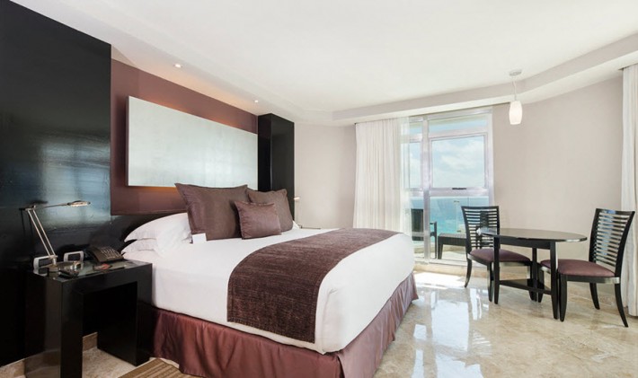 Special features in the guest rooms include pre-tuned iPods, special artwork by Yuri Zatarian, private Jacuzzis, a large flat screen TV, internet and other amenities commonly seen in other 5 star establishments. There are 4 restaurants on the premises including Mediterranean & Haute Mexican Cuisine, Private Beach Club and an Asian Bistro. There are also 5 bars spread out all serving national and international drinks. The ME Cancun has been fully renovated in a modern style and features just under 450 stylishly decorated suites in one 11 storey building. So, if you're looking for the place to be seen, then this is it.