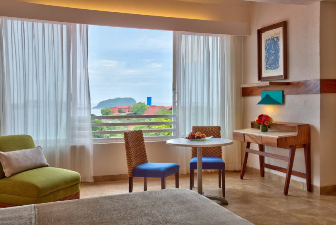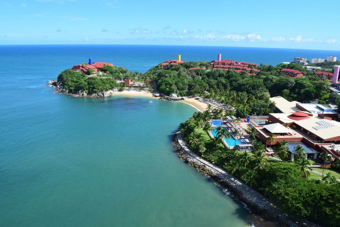 The Las Brisas Huatulco Hotel in Huatulco, Mexico by Brisas Hotels & Resorts is a tropical paradise that offers four exclusive, white sand beaches and its own coral reef. This secluded 50 acre, 484 room resort, located on the western side of Tangolunda bay, is an ideal escape from the pressures of modern day life. Las Brisas is popular both with couples seeking a romantic getaway as well as with families looking for an ideal vacation spot. The hotel is set up to resemble a small village divided into four different areas. Recently remodeled guestrooms, decorated in a minimalist style, contrast light, neutral colors against a bright blue ocean.