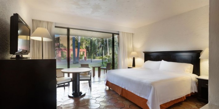 Holiday Inn Ixtapa is located directly in the heart of Ixtapa and a short walk to the El Palmar beach which is 100 metres away and approximately 20 minutes from the airport. Hotel amenities include the swimming pool, business center, gift shop, restaurant, garden-side cafeteria, pool grill, and swim-up pool bar. The hotel also offers room service, valet laundry service, laundry facilities, babysitting, currency exchange, and free parking. All rooms feature satellite TV, in-room movies, coffeemakers, hairdryers, high-speed Internet access, free local calls, individual climate controls, irons and ironing boards, voice mail, and work desks.