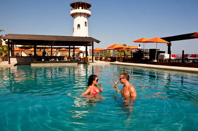 Tesoro Los Cabos Hotel is located in the heart of Cabo San Lucas on the Marina and is within easy walking distance to everything in town. Just 45 minutes drive from Los Cabos International Airport. Easy access to excellent dining and shopping, famous nightspots like The Squid Roe, Hard Rock Cafe, Cabo Wabo Cantina and Giggling Marlin, Mambo Cafe and Lobby Bar. Relax by the over-sized pool while watching the boats come in to the Cabo San Lucas marina.