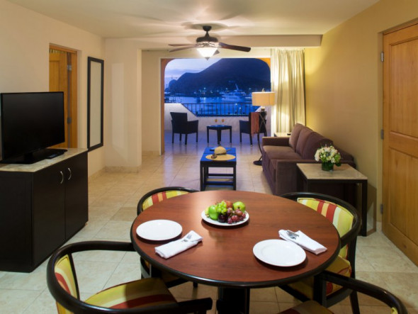 Tesoro Los Cabos Hotel is the perfect place for the Sportfishing and nightlife enthusiasts. The hotel is ready to meet all traveler's needs with travel agency, concierge service, car rental, safe deposit boxes, currency exchange, ATM machine, baby-sitters, water-sports, gift shops, fishing charters and dive operators located on the ground floor. A complimentary hotel shuttle boat provides a ride to Medano beach where you can relax and enjoy our Beach Club with the palapas, lounge chairs, towel service, beach bar, and a variety of water-sports. There are 286 Standard and Junior Suites with satellite TV, A/C, Telephone, servibar and some rooms with balcony or Jacuzzi.