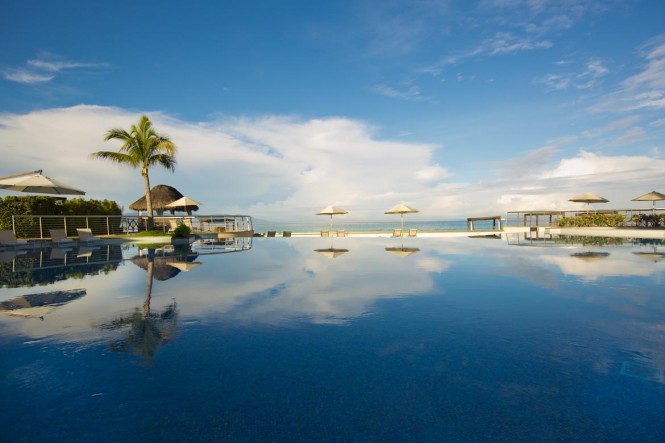 The newly constructed Sunset Plaza Resort & Spa is an impressive sight, its contemporary architecture curving gently around a lushly landscaped beachfront sundeck, where two infinity pools sparkle and guests bask in the sun in comfortable lounge chairs or enjoy a soak in one of three open-air Jacuzzis. Each of the Sunset Plaza’s spacious guest rooms and suites features a private terrace with a breathtaking 180-degree view of the ocean and the glorious Puerto Vallarta sunset. The rooms are warmly decorated in hues of orange and gold and sparkle with fine granite countertops, marble bathroom surfaces, and elegant contemporary wood furniture.