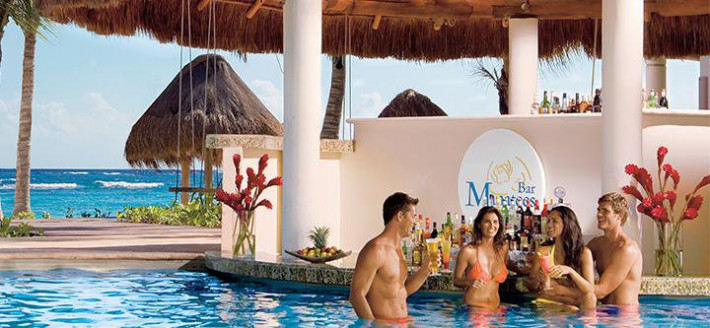 The outstanding 24-hour All-Inclusive Dreams Tulum Resort & Spa, in Riviera Maya is located on one of the most unique beaches in the Mayan. Dreams Tulum, just 5 minutes from Tulum and 15 minutes from Playa del Carmen, provides upscale surroundings and combines fun and relaxation with the ancient world of the Maya. It is the only resort in the Riviera Maya where you can view the ancient ruins of Tulum from your beach! Dining options are plentiful with a wide variety of dining experiences sure to please everyone. The resort offers five specialty restaurants: one buffet and four a la carte. Guests can relax in the sun or shade at the main bar while enjoying cool cocktails and an assortment of juices and soft drinks. Waiter service to the pool deck is also provided.