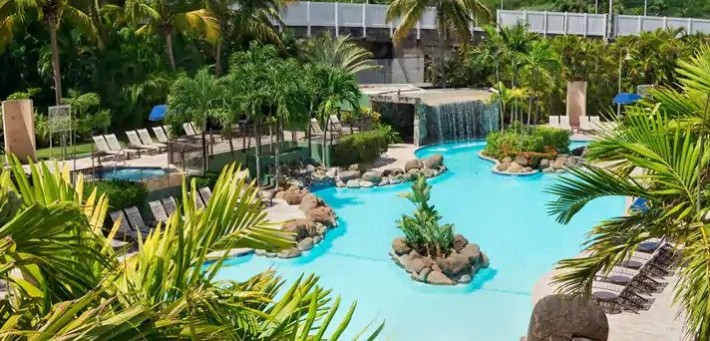 Enjoy your stay at Embassy Suites by Hilton San Juan Hotel & Casino in beautiful San Juan, Puerto Rico. This all-suite hotel is located in the Carolina area of San Juan, just two blocks from Isla Verde Beach and features a tropical free-form outdoor pool and waterfall surrounded by lush foliage. Our spacious two-room suites have a private bedroom and separate living room with a dining/work area. The living room features a refrigerator, microwave, wet bar, a sofa bed and a TV in every room.