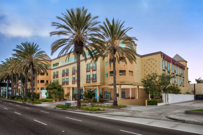 The Desert Palms Hotel and Suites is located in the heart of the Anaheim Resort. It is right on the corner of business and pleasure; located next door to the Disneyland Resort and across the street from the Anaheim Convention Center. Along with our spacious rooms and suites we offer Free Breakfast, Free Parking, and a Free Hot Breakfast Buffet. All rooms and suites come equipped with a microwave, mini-fridge and coffee maker.