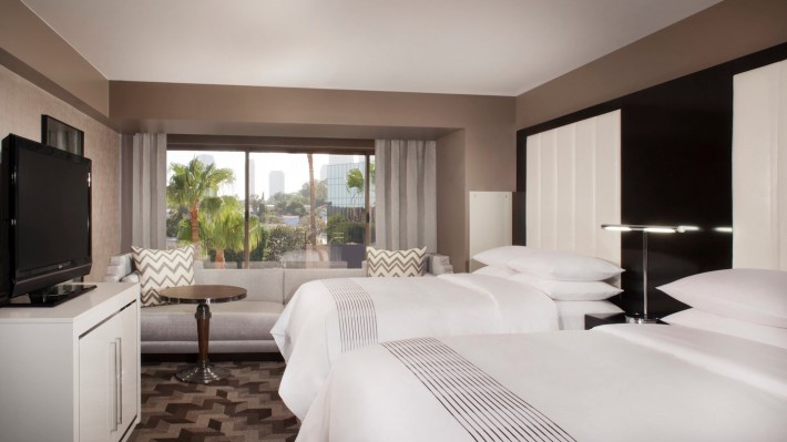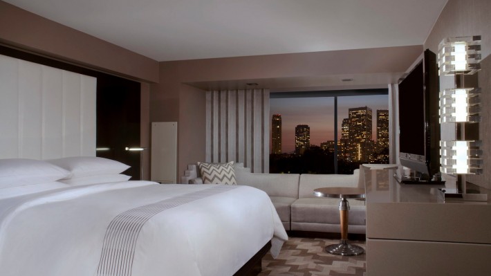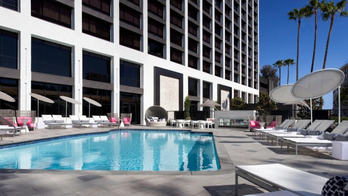 Cherish the pampered lifestyle when staying at Beverly Hills Marriott. Near Rodeo Drive and within the Los Angeles vicinity, our Beverly Hills, CA hotel balances business and leisure with thoughtful amenities and personalized services in a setting that's relaxing yet exciting. Sample classic American cuisine with a California twist at our celebrated restaurant, or savor a favorite wine or cocktail in the chic lobby bar. Guest rooms at one of the newest Beverly Hills hotels offer sweeping views of Hollywood and Century City while seamlessly blending modern technologies and creature comforts. Elite Marriott Rewards members can unwind 24 hours a day in the Club Lounge with flexible spaces to work, connect and recharge. In downtime, all visitors will appreciate our hotel's heated outdoor pool with contemporary chaise lounges and elegant deck furnishings. The professional staff at our Beverly Hills hotel stands committed to making your stay as productive, successful or tranquil as you desire and deserve.
