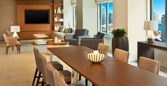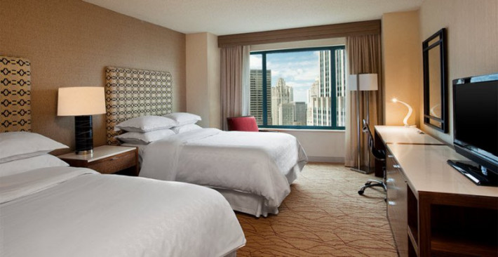 The Sheraton Grand Chicago is Chicago's premier downtown riverfront hotel, just off Michigan Avenue, and within a short walk of Navy Pier, Millennium Park, museums, shopping and entertainment. The hotel offers spectacular views of either Lake Michigan or the city skyline. Guests enjoy deluxe accommodations, including Sheraton's Sweet Sleepersm Beds, in-room safes, coffee makers, in-room refreshment center, high-speed Internet access, cable television with movies and video games. Club guest rooms, located on the top four floors, feature plush robes, turndown service, complimentary continental breakfast and afternoon hors d'oeuvres. There are five distinctive restaurants and lounges, including the acclaimed Shula's Steak House, health club, indoor swimming pool, sun deck, sauna, and massage therapy.