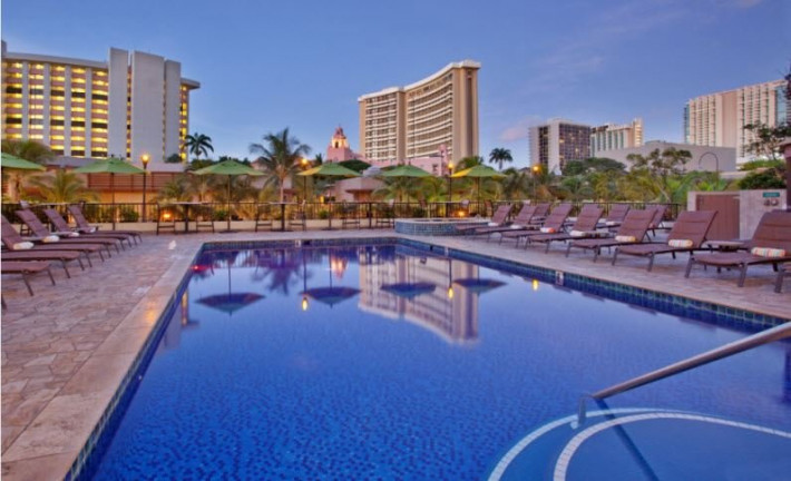You can easily combine business with pleasure when you choose this family-friendly Waikiki resort hotel. We're just four miles from the vibrant downtown area, and the University of Hawaii is two miles north. You can even use the poolside free Wi-Fi access to check in with the boss and clients.