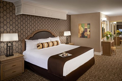 The Golden Nugget Las Vegas has been the treasure of Fremont Street for more than 50 years. It has seen Fremont turn from a barely paved road to one of the most photographed thoroughfares in the world and finally to its newest incarnation, the Fremont Street Experience pedestrian mall. Through all that time, it has stood as proud and priceless as the Hand Of Faith, the 61-pound gold nugget displayed inside the casino. The rest of the Nugget rivals the gold piece in sheer elegance. Everything from the 1,907 luxury rooms to the hotels gold-leaf facade is rich with Victorian refinement. The pool terrace is decorated with ornate bronze and marble sculptures of fish and swans. The dining here is some of the most celebrated in town, including the gourmet delicacies of Lillie Langtrys and a Buffet that draws people by the thousands. The 36,000-square-foot casino accommodates every kind of gambler, from the neophyte to the seasoned high roller. And the dazzling light show of the Fremont Street Experience is mere steps away.