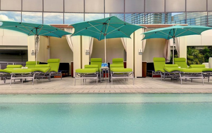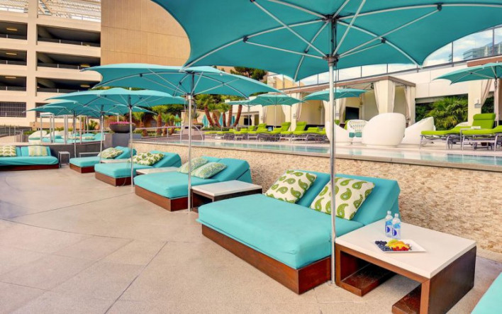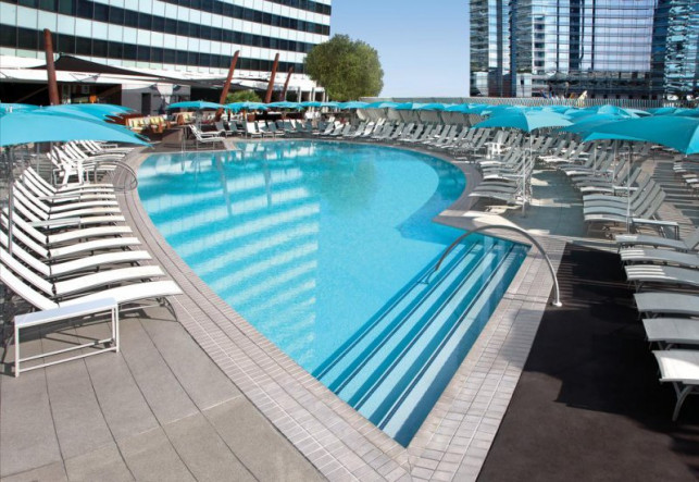 -Vdara Pool & Lounge featuring a sparkling pool, bar and lounge, cabanas and event space