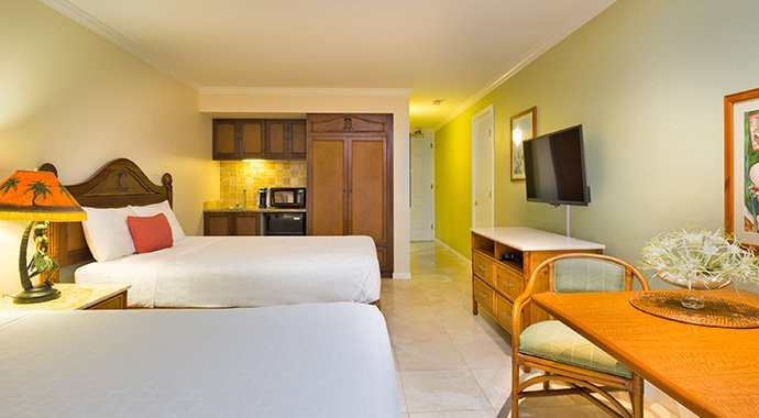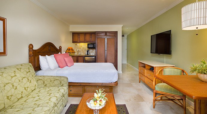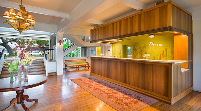 Both contemporary and nostalgic, Aston Islander on the Beach features thatched huts, hand-carved furnishings and plantation-style décor. The beachfront pool area offers barbecue areas, a large, sparkling pool, jet spa and a poolside bar. Accommodations include spacious hotel rooms and one-bedroom suites with air conditioning, mini-refrigerators, microwaves, high-speed internet access and private lanai with ocean or exotic tropical garden views.