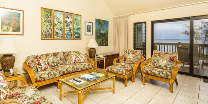 Kaha Lani Resort features oceanfront condominiums adjacent to Lydgate Beach Park and playground, with a walking path along the coast. Centrally located, the resort offers a variety of one-, two-, and three-bedroom suites, all oceanview or oceanfront. Amenities include a pool, tennis court, barbecues, and a putting green.