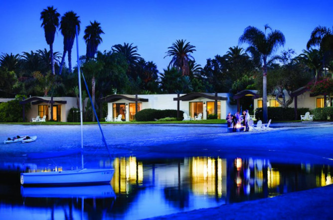 Tucked away on gentle Mission Bay, this luxurious 44-acre island resort features comfortable, California bungalow-style rooms amidst lush, tropical gardens and lagoons. Here at this AAA Four-Diamond San Diego hotel, you can explore one mile of beach, five swimming pools, and enjoy various amenities including tennis courts, an 18-hole putting course, beach cruisers, bonfire pits, and a private marina equipped with sailboats, jet skis, and kayaks. Dine at one of two waterfront venues, then relax and refresh at the plush spa with a treatment from Hawaii, Fiji, Thailand, or Bali. Secluded yet centrally located, the hotel is minutes from top attractions including SeaWorld, Old Town, the San Diego Zoo, and Gaslamp District.