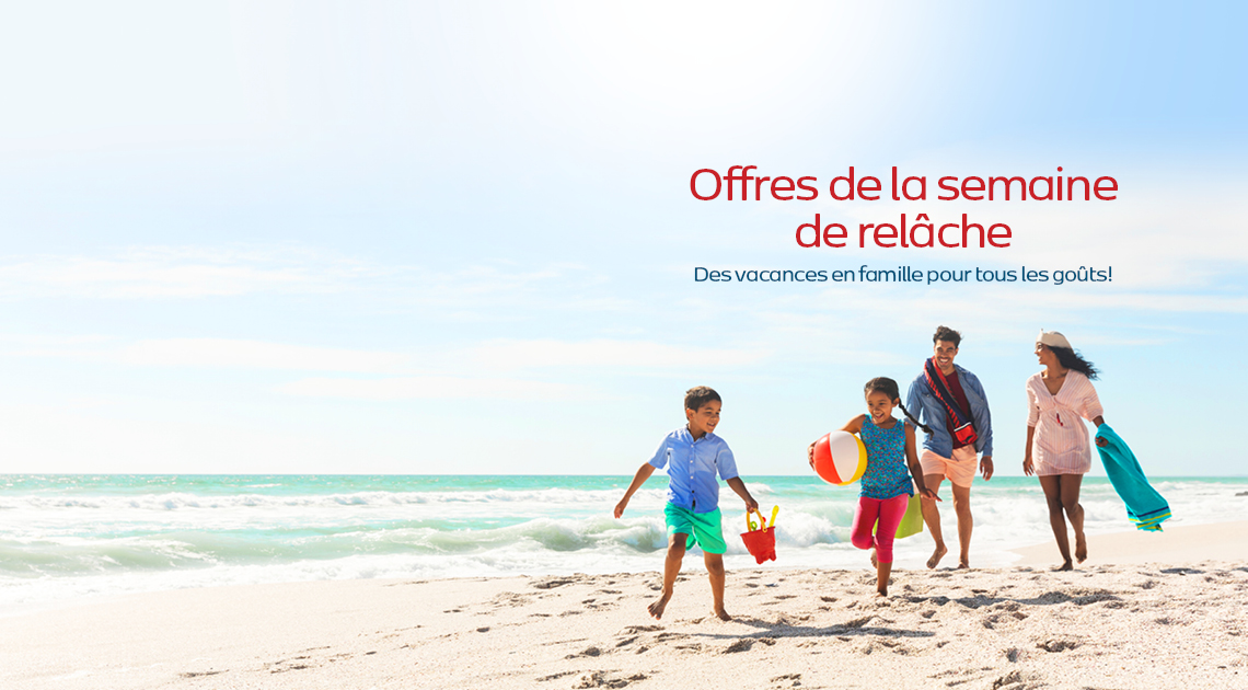 Chez RedTag, nos forfaits vacances de la relâche sont maintenant en solde. Trouvez des vacances à bon marché en Floride, à Cuba, en Jamaïque, à Saint-Martin, au Mexique, en République dominicaine et dans d'autres destinations ensoleillées des Caraïbes, d'Amérique centrale et d'Amérique du Sud - départ de toutes les villes du Canada. Grâce à nos aubaines de vacances du Canada, en mars, vous pourrez vous détendre en famille sur la plage, faire de la plongée en apnée dans la mer des Caraïbes ou vous amuser à Disney World.