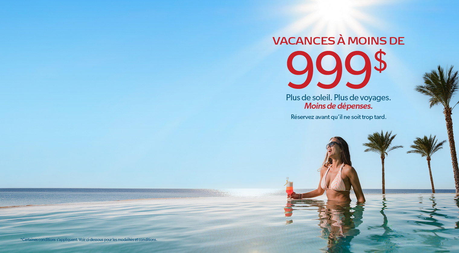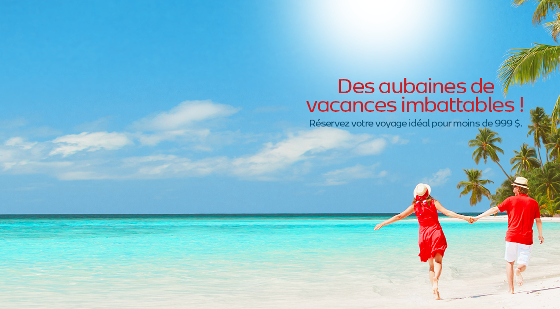 Tous ces forfaits vacances sont à moins de 999 $ et en solde ! Réservez aujourd’hui ces superbes forfaits vacances dans les Caraïbes, au Mexique, en République dominicaine et à Cuba