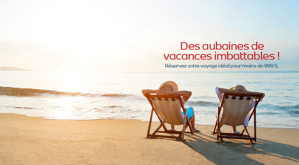 *Certaines conditions s'appliquent. Les prix sont sujets à changement à tout moment et sans préavis. Pour confirmer la disponibilité et le prix final, vous devez passer à la page de paiement. Les tarifs promotionnels sont déjà inclus dans les prix affichés en ligne. Applicable seulement sur les nouvelles réservations et ne s'applique pas aux réservations préexistantes.