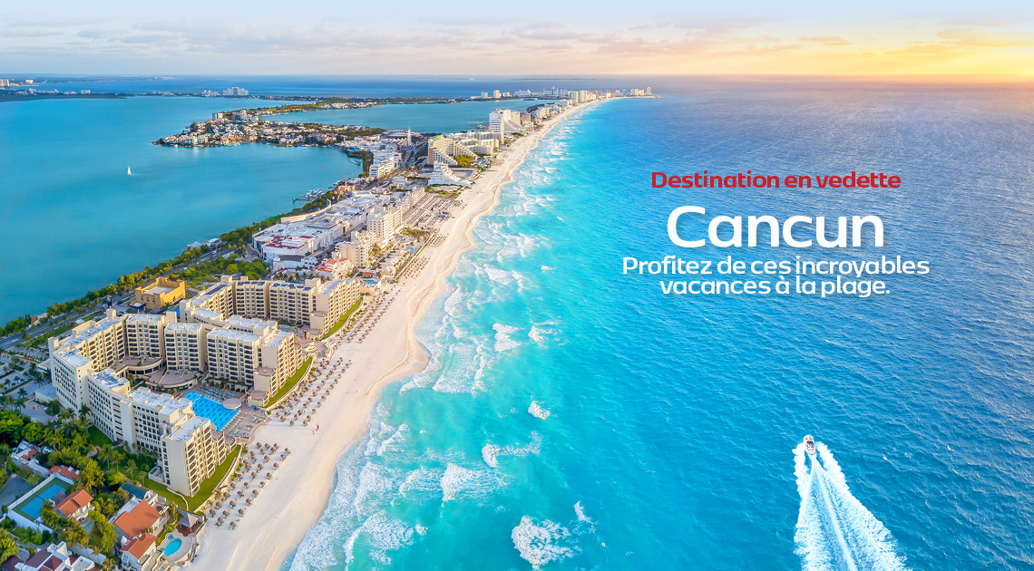 Vacances à Cancun, Mexique - redtag.ca vous aide à trouver facilement des vacances pas chères à Cancun, au départ du Canada, ou des hôtels et centres de villégiature à Cancun. Réservez vos vacances pas chères à Cancun aujourd’hui et économisez! redtag.ca offre les meilleures aubaines de voyage les plus récentes pour Cancun