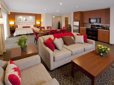 The Crimson was inspired by true Canadian colours: Jasper's sunsets and fall foliage, our Canadian flag and the uniform of the Royal Canadian Mounted Police. The 99 room hotel features a wide variety of rooms including spacious guestrooms, and studios and suites with full kitchen facilities. The hotel also features an indoor pool and Peak fitness room. The new C200 restaurant and lounge welcomes guests for breakfast and dinner and can accommodate Private Dining Room and Banquet Facilities.