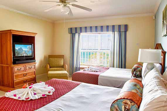 The Bay Gardens Beach Resort in St. Lucia features one bedroom suites complete with full kitchen, living and dining areas, deluxe rooms are interconnecting to create a two bedroom suite option. All accommodations feature modern bathroom fixtures and amenities.