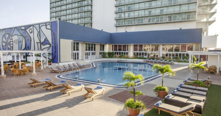 Hotel Tryp Habana Libre (formerly known as Habana Libre Palmeras) is a 5 star hotel situated in the center of La Rampa in the very heart of Havana. It is a perfect base for your business trip and is equipped with 8 meeting and convention rooms, catering for up to 2000 people. The hotel has three restaurants, serving Creole, Polynesian and international cuisine, a snack bar, cafeteria and buffet restaurant, a patio bar, a piano bar and the "Salsa Cafe" night club. There is also a fitness club with a gym, massages, hydromassage and hydrotherapy.