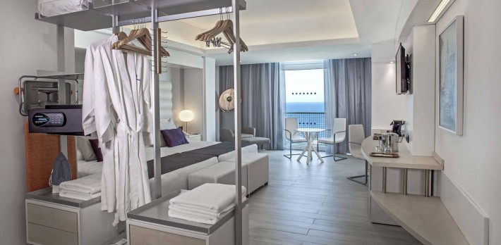 The swimming pool is equipped with a solarium and a snack bar. The hotel has its own shopping arcade with travel agency, post office, car rental, airline offices and business center. The 556 superior rooms are all equipped with private bathroom, air conditioning, satellite TV, piped music, DD telephone, mini-bar, safety deposit box and views of either the city or the sea. 24 room service is available. The junior suites, Governor Suite and Presidential suite are also equipped with a large living room and terrace. Laundry and dry cleaning services are available, and there is a 24 hour medical service. Car parking is also available.
