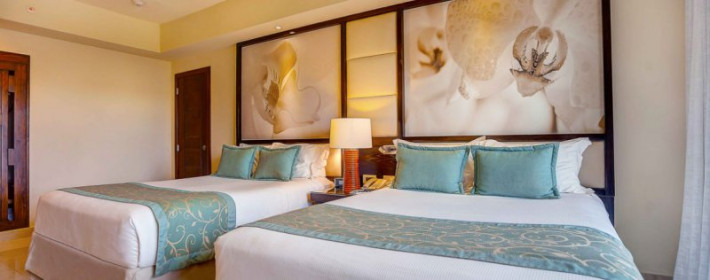 ACCOMMODATION: Air-conditioned Hotel Room with 1 king or 2 double beds, cable TV, phone, in-room safe, mini-fridge (stocked with water & soft drinks), bathroom with tub and shower, hairdryer, balcony or terrace, maximum occupancy 4 persons, Hotel Room Ocean View offers the same as the Hotel Room but with an ocean view.