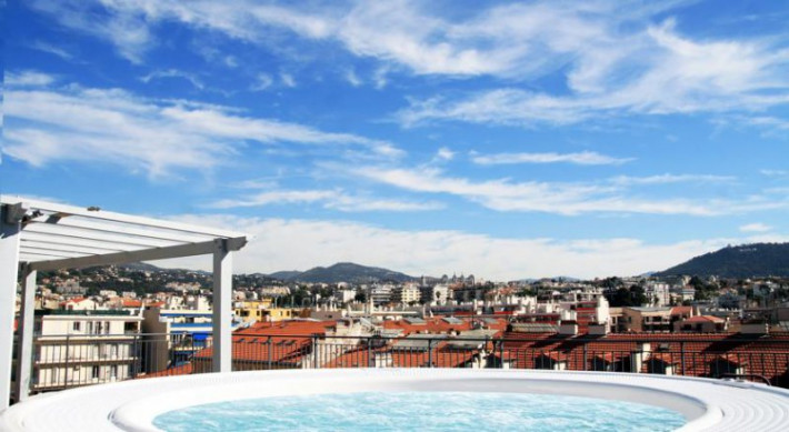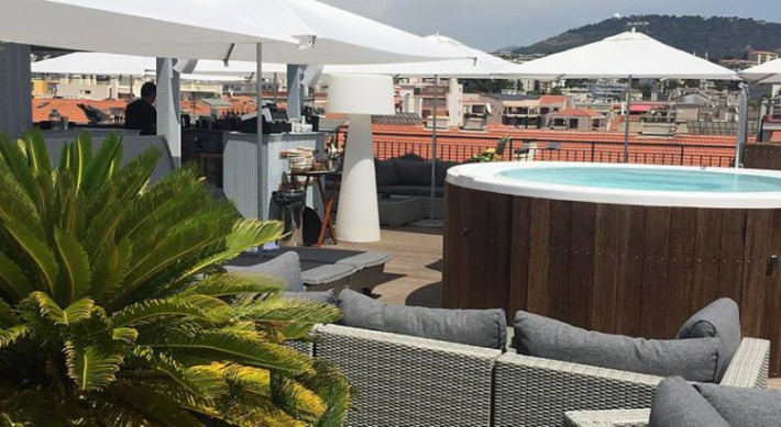 The Rooftop Monsigny is the Roof Bar on the 7th floor of the Hotel Monsigny - located in the center of Nice in the pedestrian area of Malaussena with an exceptional 360 ° panoramic view over Nice, the Mediterranean and the hills. Far from the looks and the hustle and bustle, take the height and relax on the deckchairs, in the Jacuzzi or on the comfortable sofas.