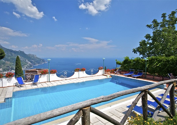 Villa Casale is located a short walk from the main piazza of Ravello, with the Duomo and the gardens of Villa Rufolo within easy reach. Just as conveniently accessible are the delightful restaurants which set their tables out in the Duomo's piazza in the evening for all to congregate and enjoy the local food and vibrant atmosphere. A large swimming pool is set on the main terrace of the complex, surrounded by magical scenery. The view from here is unbeatable as it takes in not only every shade of blue in the sea and sky, but also the verdant hillside which plunges down to the coast: once there you realise this is probably one of the most spectacular views in the whole of Italy.