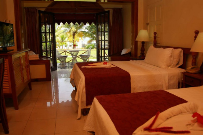 Charela Inn the discreet charm of peace & tranquility, good company and fine food. Nothing more ... Nothing less. CHARELA INN resort sits elegantly on the famous Negril Beach, by the Caribbean Sea. Its fifty rooms and beach stretches 250 feet in width and 150 feet in depth of pure white sand sprinkled with coconut trees to afford natural shade to our guests. Beyond the sand lies a lawn and two large patios to dine "Al fresco" or simply sip cocktails while watching the sunset. All 47 rooms are built around an inner court yard in an Hacienda style with a round fresh water swimming pool in the centre of the yard, and a lush tropical garden with hibiscus, night jasmine, bougainvilleas etc. As well as many birds including our national doctor bird. The feeling is one of being far from the crowds -- yet a few steps away from the world of water sports and many attractions on the seven mile beach. All buildings are of two floors. Each room has either a private patio or a private balcony. All public access at Charela Inn are designed to accommodate the physically impaired, along with three dedicated ground floor rooms. Charela Inn is renowned for the friendliness and caring of its long standing staff, many being with the resort for over 15 years. Charel's longstanding repeat guests of many nationalities brings with them a true feeling of friendship and are cherished by both management and staff.