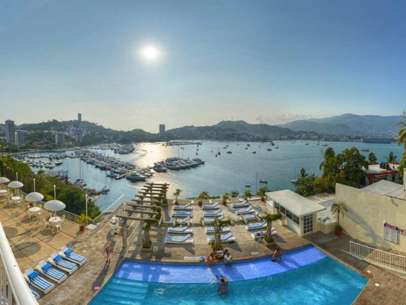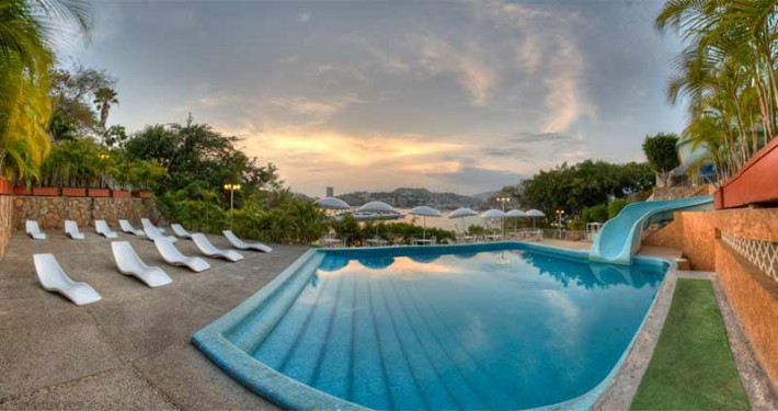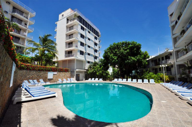 Located on a hilltop in the center of a residential area, Suites Alba of Acapulco, Mexico, offers excellent value for money hotel in Acapulco, Mexico, located on a quiet hill in a residential are surrounded by green gardens. Suites Alba offers the perfect accommodation for a family oriented holiday, and the hotel will grant you a peaceful stay and great views to Acapulco Bay. La Quebrantada, a cliff from where daring divers jump into the sea; or the San Diego Fort, now a history museum, are easily reachable from the hotel. Overlooking the bay and the cruise port of Acapulco, Alba Suites is a traveller favourite for long stays!