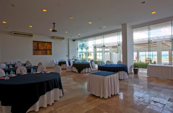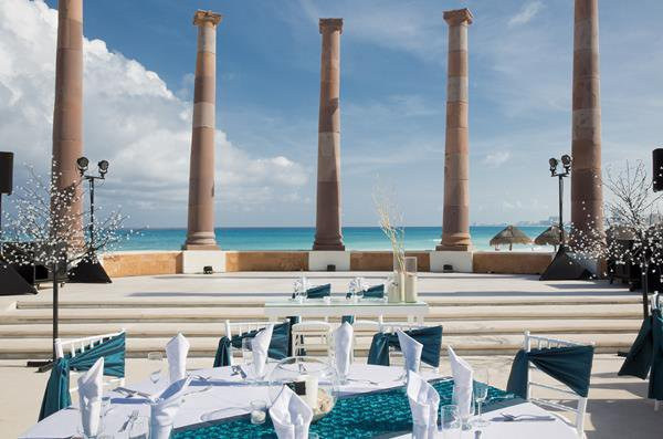 - Sits beachfront in Cancun’s Hotel Zone