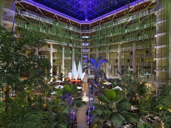 Timeless Luxury with an Avant-Garde Flair Evocative of an ancient Mayan civilization; lavish architecture that rises into the sky and slips back into the sandy Cancun shore. Gran Meliá Cancun Resort [Paradisus Cancun] is a 5-star, AAA 4-diamond beachfront resort, voluminous as it is elegant, decadent as it is distinguished. Gran Meliá Cancun's [Paradisus Cancun] five majestic pyramids decorate this timelessly-tropical scene, revealing a backdrop of the Caribbean Sea. Four spectacular pools, luxurious guestrooms, dining and the hotel's renowned YHI Spa, one of the most prestigious in the world, are only a taste of a bold collection of services and amenities offered at this sleek, seductive and luxurious Cancun resort paradise. Positioned, carefully, in Cancun's Hotel Zone, Gran Meliá Cancun [Paradisus Cancun] luxury hotel is within 5 minutes from the city's premier shopping centers, 15 minutes from the International Airport, and immediate proximity to the downtown and many exciting entertainment venues. A 9-hole, par 3 executive golf course, three lavish pools, and the signature YHI Spa offer the discerning guest a definitive means to leisure. Experience a hotel that radiates the beauty of the Yucatán Peninsula, and the privilege and compassion of Gran Meliá [Paradisus Cancun], premiere Cancun resorts.