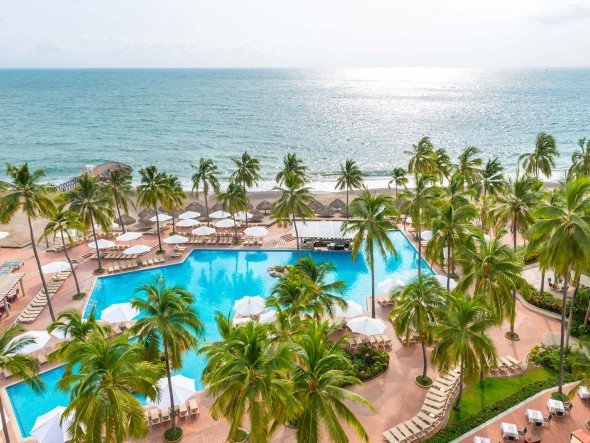 Sheraton Buganvilias Resort & Convention Center in Puerto Vallarta is located directly on Playa Las Glorias beach in the Bay of Banderas. This completely renovated resort has a superb atmosphere and offers spectacular ocean and mountain views.