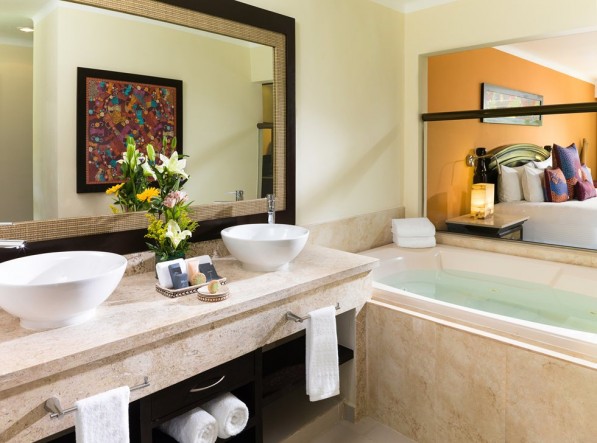 El Dorado Casitas Royale is the sister property to El Dorado Royale and it is the newest section of El Dorado Royale. The location of El Dorado Casitas is directly on the beach, 20 minutes from Playa del Carmen, 25 minute drive from Cancun International Airport, and 10 minute drive from Puerto Morelos. The individual Casita Suites are unique, stand alone one room building directly facing the Caribbean Sea. The features of the Ocean Front Casita Suite, relax on your water-mirror balcony and step directly into an unique lazy river that connects to the main pool with swim up bar. Along with all the standard furnishings, the Casita suites feature high ceilings with a thatched roof, double sink, full bath and shower, an ocean view indoor Jacuzzi, an oversized balcony with breathtaking views of the Caribbean.