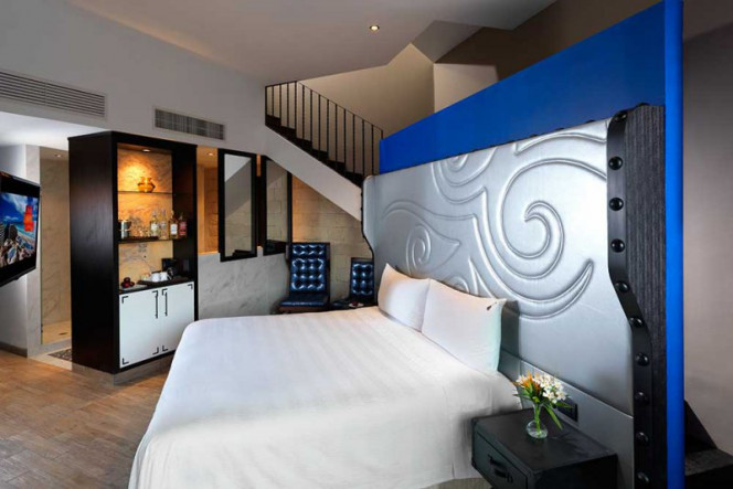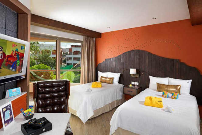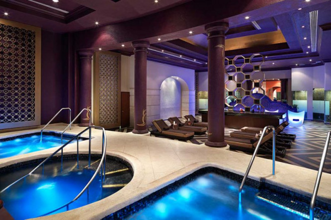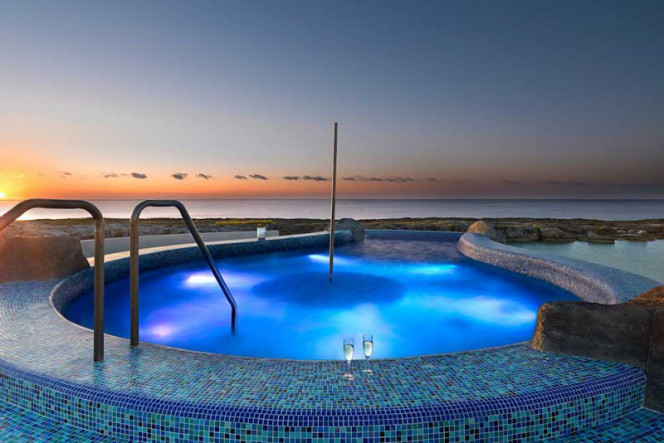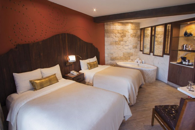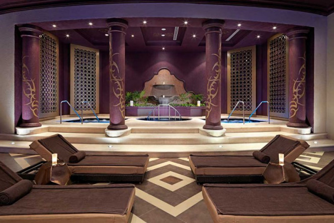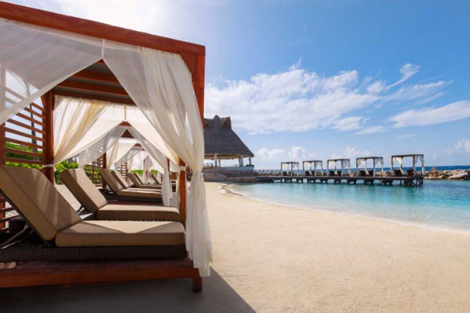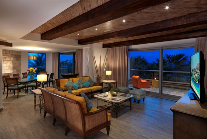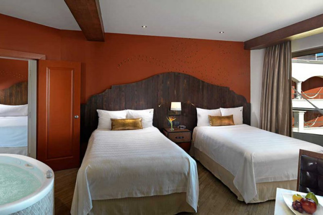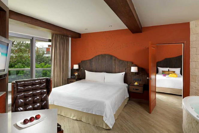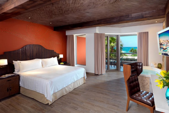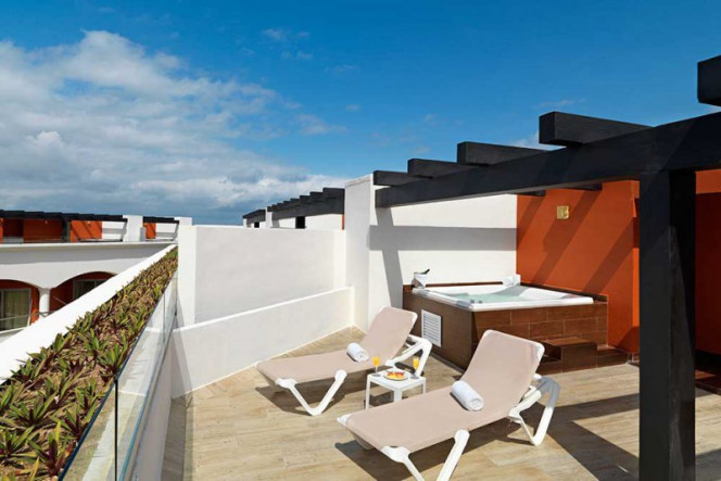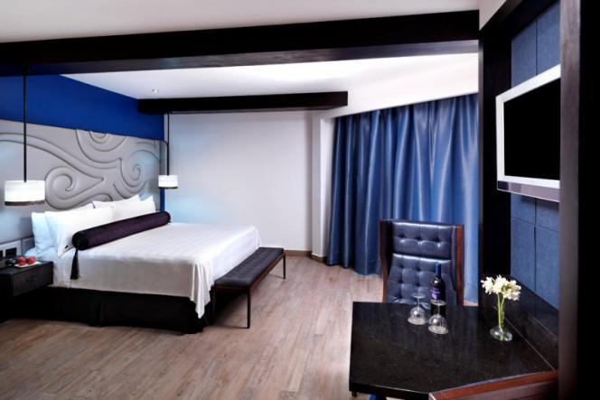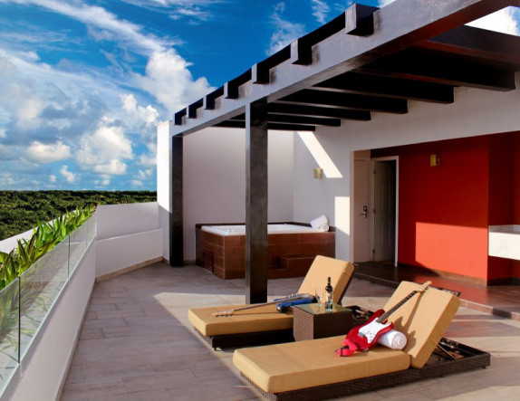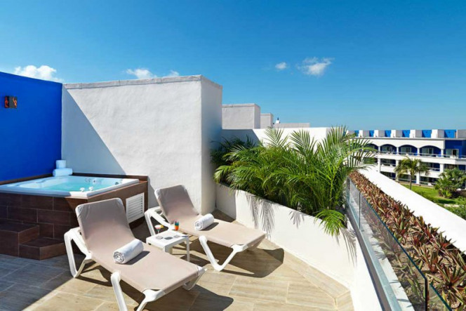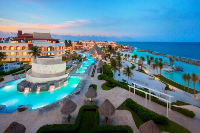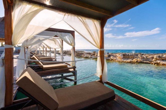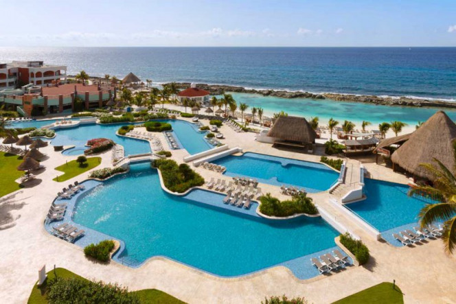The Aventura Spa Palace is an adults-only resort set within an 85-acre expanse of the Mayan Riviera surrounded by wild tropical gardens directly facing the Caribbean Sea. Protected and secluded by a natural rock and coral formation, there is a beautiful carved inlet of transparent turquoise waters bordering a pristine white sandy beach creating an exclusive and secure hideaway. The Aventura Palace is styled as a Mexican hacienda with an open central patio and features 474 air-conditioned luxurious rooms all with jacuzzis and a private balcony or terrace to enjoy the spectacular ocean view.