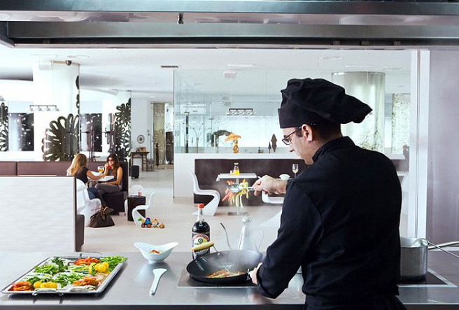 Snack Bar " OLEA " with an innovative concept involving the sampling of Andalusian flavours, based on natural olive oil, and assisting in the live process of producing different woks in our Showcooking.